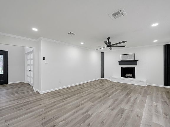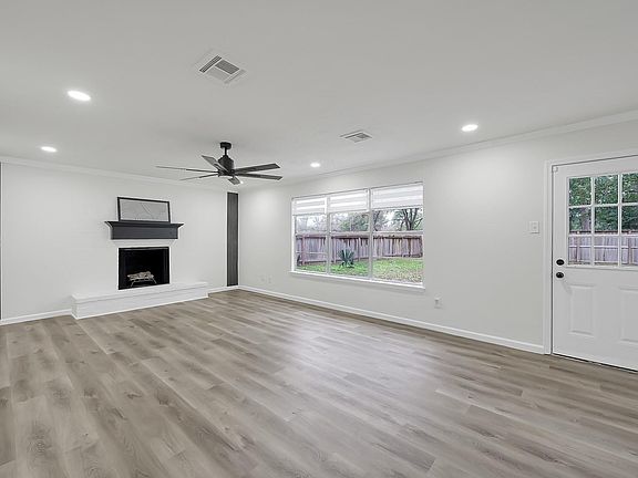 RENOVATED & MODERNIZED IN 2025 / DESIGNER FINISHES / PRIVATE BACKYARD! This prime move-in-ready home showcases extensive upgrades inside & out with refined style & quality finishes. The new exterior details include: All new roof & gutters, accent lighting(under roof), exterior paint, landscaping including lighting, +sensored porch lights. Inside, the completely remodeled kitchen showcases new cabinets & hardware, Calcutta quartz countertops & backsplash, sink & faucet, all brand-new appliances, pendant lighting, disposal, & expanded walk-in pantry. Completely remodeled bathrooms feature new quartz countertops, vanities, sinks, faucets, toilets, mirrors, lighting, & fixtures. No detail is left undone: New luxury vinyl plank floors downstairs & new upstairs carpet, top to bottom fresh paint, new baseboards, crown molding, door hardware, ceiling fans, chandeliers, laundry barn door, French doors, added recessed lighting. Oversized den! Downstairs XL study could be gameroom! ABOVE THE NORM