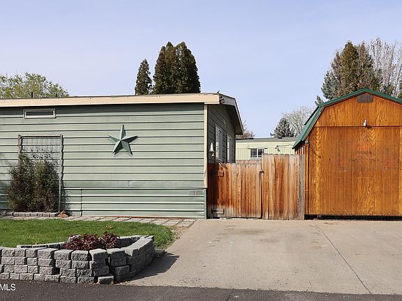 Pride of ownership shines throughout this delightful 3 bedroom, 2 bathroom home. Thoughtful updates include a primary bathroom remodel, all-new PEX plumbing under the home, and a new HVAC unit. The home has a front porch, cute landscaping, and a large tree perfect for climbing. Once inside, this home feels quite spacious with two living rooms, one has a baby grand piano which comes with the sale of the home. The other living room has a fireplace to help with heating costs in the winter months. Another great feature is the plank flooring that runs throughout the common areas which gives the space an attractive, modern look. The kitchen has plenty of counter space, and upgraded lighting. Retreat to the primary bedroom has a walk-in closet and a lot of natural light. Doing laundry is a breeze with a spacious laundry room that leads to a smaller deck and a fully fenced yard off of the laundry room. The backyard has a 16x20 shed that comes with the sale and a concrete pad where you can set up a BBQ and entertain guests with privacy from your neighbors. Meadowbrook Estates is an all-ages gated manufactured home community located in town and close to everything. The community includes a large swimming pool, basketball courts, playground, and clubhouse for parties and events. The lot rent for this home is $650.