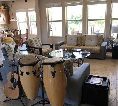 This property is a long term listing minimum one year. A special listen in special spot. Walking distance to great restaurants : The Vue, Vicky of Santa Fe, across front the Hyatt, Renaissance Esmeralda Resort and Spa, Miramonte resort, beautiful golf course . Gorgeous South facing leisure area with a custom pool/spa , mountain views & lovely patio which has many seating vignettes, in addition to a custom build BBQ This home is in a private gated community in the heart of Indian Wells CA. The upscale community itself has an incredibly well maintained feel inclusive of pavers on the street. Originally one of the models homes in this community, the upgrades are non-ending &include crown moldings , a gourmet kitchen with stainless steel appliances &gorgeous tiled backsplash, a great walk pantry & customs build-ins through. Travertine floors, Owner: pay for pool & gardener maintenance & HOA fees . Tenants pay : Water, Electricity, Gas Phone, Internet, and TV