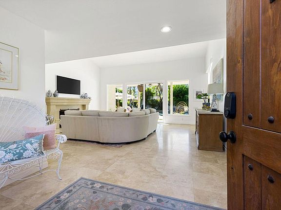 Tucked within one of Indian Wells' most sought-after enclaves, this updated desert residence pairs generous scale with an effortless, modern sensibility. South facing orientation captures unobstructed views of Mount Eisenhower and the surrounding ranges, while the .28 acre corner lot provides both privacy and a sense of openness rarely found in the area. Inside, vaulted ceilings and a soft, natural light define the home's atmosphere, creating spaces that feel airy, calm, and inviting. Travertine floors extend throughout the main living areas, grounding the interior in warm, organic texture. The great room centers on a monumental stone fireplace an architectural gesture that brings presence and balance to the open layout. Adjacent dining and entertaining zones include a dedicated wet bar, while the expansive kitchen offers a central island, counter seating, and a breakfast room overlooking the pool terrace. The primary suite occupies its own wing, offering a spacious retreat with vaulted ceilings, an oversized walk-in closet, dual vanities, and a separate tub and shower. Two additional guest suites each with a private bath provide comfort and separation for family or visitors. A fourth bedroom, also suited as an office or den, enjoys its own private patio, adding flexibility for work, reading, or quiet retreat. An oversized laundry room doubling as a butler's pantry enhances the home's functionality and storage. Outdoors, the south-facing pool and spa serve as the focal point of the property, featuring a beach entry, baja shelf, and waterfall spa. Multiple lounging and dining areas are wrapped by mature landscaping and citrus trees, creating a relaxed, resort-like environment with dramatic mountain backdrops throughout the day. Additional features include newly painted interior and exterior, a finished two car garage with epoxy floors, double door foyer entry, and a thoughtful layout that promotes connection, light, and livability. The home provides a seamless transition into the Indian Wells lifestyle just moments from world class golf, luxury resorts, and the shopping and dining experiences of nearby El Paseo.