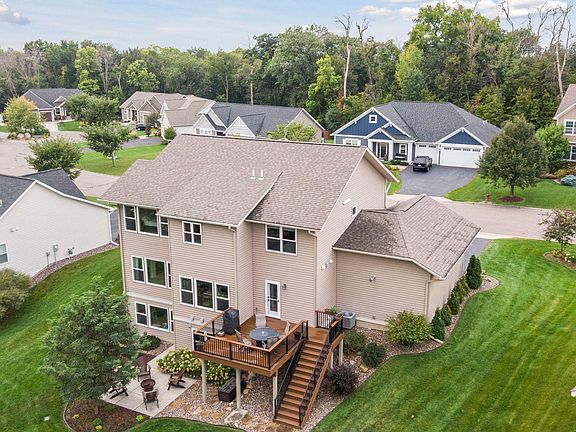 Former Parade of Homes model by Custom One Homes with over 4,000 square feet of finished living area. Custom designed 5 bedroom, 5 bath, with oversized 3 car garage all on a gorgeous walk-out wooded lot. Enjoy entertaining in this open concept main level with maintenance free deck overlooking the perfectly kept yard. The Everwood community features 26 exclusive home sites located on a private cul-de-sac surrounded by a wooded wonderland which is a protected city park. You get the quiet, feel, & privacy of up north without the cost & maintenance of acreage. Close and convenient to highway access, shopping, and restaurants. Do not miss out!