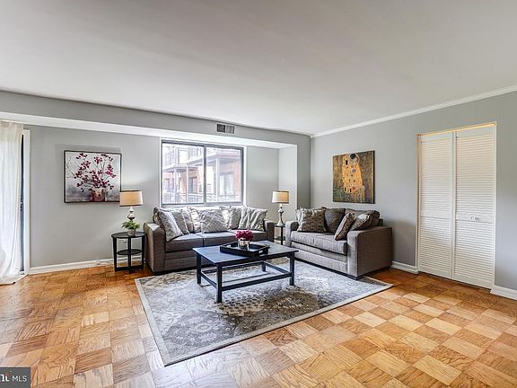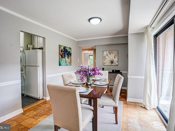 Freshly painted two-bedroom unit located on the 7th floor of Takoma Phoenix Condominium providing great views! Spacious sun-filled living room with newly refinished parquet floors, crown molding, kitchen with a pass-through opening, a wall of windows, a coat closet, and picturesque tree-top views. Gracious dining area with overhead lighting, chair rail molding; this room opens to the kitchen and living room. Wonderful balcony off the living room and dining room with views overlooking the courtyard. Functional kitchen with gas cooking, ample cabinetry, good sightlines, and the convenience of a washing machine. The unit is complete with two sizeable bedrooms, including a generous primary bedroom with wall-to-wall carpeting, a ceiling fan, two large windows and a closet. The ceramic tile bathroom includes a full-size bathtub/shower and a pedestal sink. The perfect location: close to Sligo Creek Park, Takoma Park Library and Community Center, Downtown Silver Spring, shopping, restaurants, the farmer's market, and entertainment. 0.8 miles to the Takoma Park Metro Station. . . . Easy parking in the lot ($20/month per car) or free street parking.