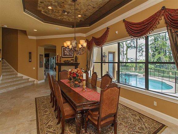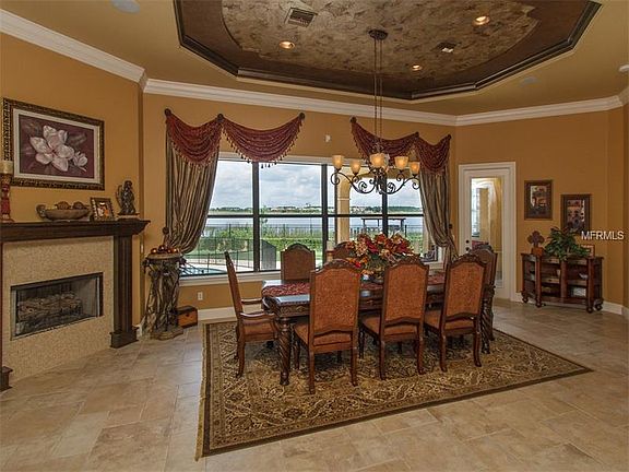 Enjoy fabulous sunsets in this Keene's Pointe custom lake front home. As good as new, this 6 bedroom, 7 full/2 half-bath home has been completely updated. As soon as you enter the 23 ft. rotunda foyer you are surrounded by fabulous views of Lake Burden. The formal living room features a two-sided fireplace looking in to the breakfast room that adjoins the kitchen with stainless steel commercial-grade appliances, granite counter tops and decorative glass mosaic back splash. The family room/game room features a wet bar w/double refrigeration, a wine bar and ice maker. Two sets of 16ft. sliding doors lead you from the game room to the lanai with wood paneled ceilings, summer kitchen and fireplace. The master suite also has a fireplace, built-in desk and morning bar. The foyer into the master bath highlights two spacious master closets with the hers closet boasting a dressing table and secondary washer/dryer. The master bath has his 'n her vanities, a jetted tub and shower w/8 body jets, rain head and attached steam shower. Also located downstairs are TWO additional ensuite bedrooms, office and a high end 3D home theatre with seating for 10 and a functional wet bar. The upstairs has a game/media room with wet bar that is pre-wired for AV, a loft/family room, hobby room with built-in cabinetry and a laundry chute, and 3 ensuite bedrooms, one of which serves as a second master suite with wet bar and refrigeration. The back yard is fenced and offers lake and canal access from two sides.
