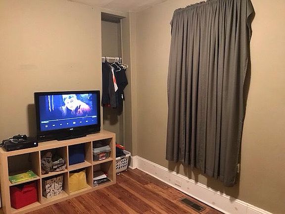 exposed brick in the kitchen, central AC, rear yard, full basement for storage. hardwood floors. small dogs ok with 35 dollar per month fee and proof of renters ins required gas and electric paid by tenant. water and sewer have a 35 dollar per month fee added to monthly rent.