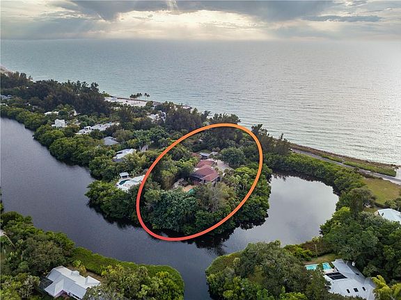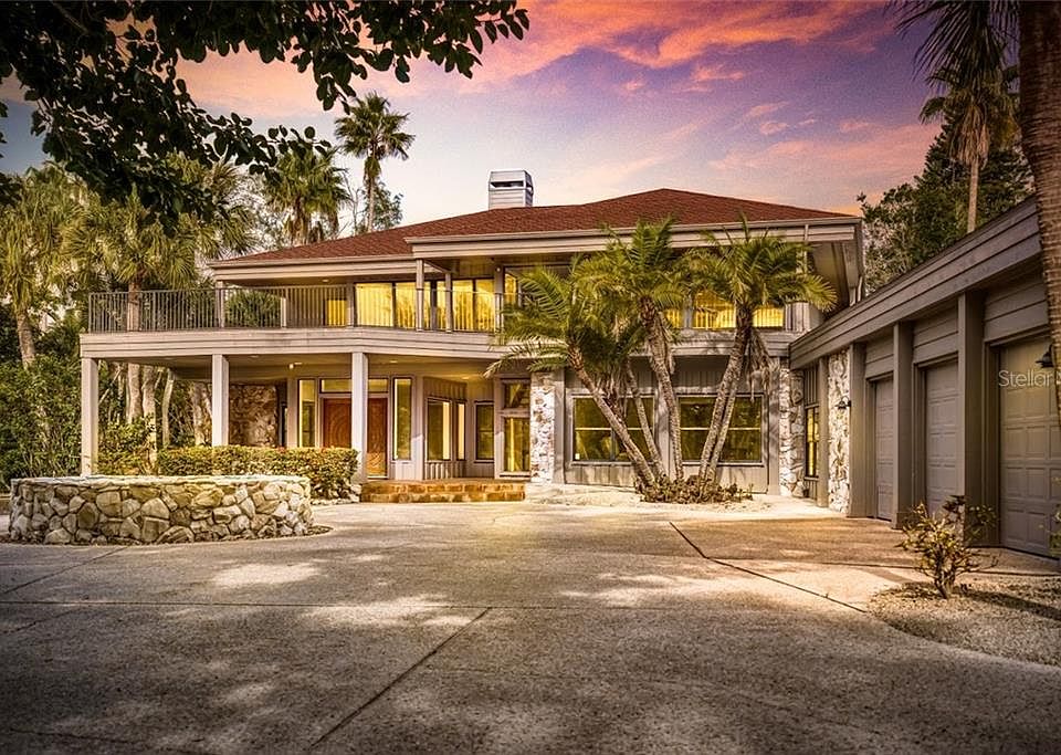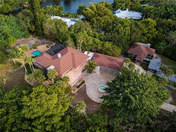 Secluded, clean and safe, perfect for social distancing. Welcome to this stunning & spacious estate with almost 2 acres with the lot extending from the pristine Gulf of Mexico to the Heron Lagoon. The exclusive and gated Sanderling Club is comprised of beautiful homes surrounded by nature on Siesta key and includes tennis courts, pickleball, a clubhouse and a marina. Many updates including new 2019 Trane HVAC, an extended deck on the second floor, updated kitchen with stainless appliances that have never been used, tile floors and a solid cherry staircase with wrought iron handrails. Other updates include new elevator, pool cage and hot water tank in 2019. One of a kind, this stunning pool home with almost 6700 sf has its own private gated entry and the roof was done with high-end architectural shingles and built with bar joist and steel I-beam structure. A separate guest home, built with impressive Twitchell architecture, was built to last with solid poured concrete, including the roof enhanced with shingle overlay and would be ideal for in-laws. This estate has a private dock nestled on the Heron Lagoon and you can enjoy kayaking down the one and a half mile waterway with picturesque landscaping. Other features include a whole-home entertainment system, a double wood fireplace on two levels, central vacuum and whole home generator. The den and spacious game room with hidden built-ins could accommodate a gun safe and wine cellar, and could easily be altered into a bedroom. If you are seeking expansive privacy and an upscale community, this is the one!