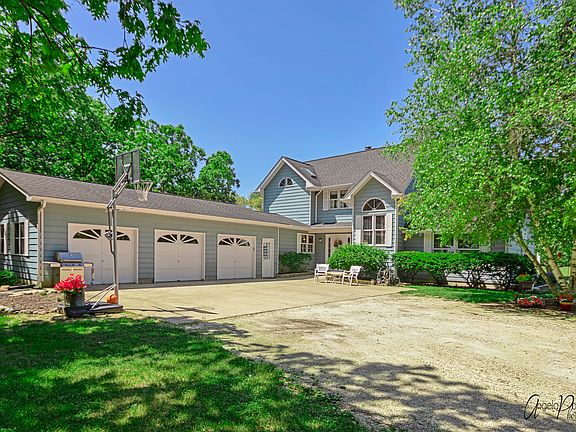 NOTE: WE WILL PAY BUYER'S REAL ESTATE AGENT 2.5% COMMISSION AT CLOSING. This country home sits on 5 beautiful acres of peace and tranquility. A separate access road leads to the outbuilding with workshop. Outbuilding has 100 amp (capable of 220) and water. The large workshop has heat, A/C, and double interior access doors for larger projects. Home has a 3 car garage, 4 bedrooms, 2 full and 2 half baths. New paint throughout, new skylights throughout and new carpet. The hardwood floors in foyer and great room have been refinished in last 6 months. Kitchen boasts a Thermador commercial stove and a new dishwasher. There are 2 beautiful fireplaces in the home, 1 in the great room and 1 in the master bedroom. Large master bathroom with jetted hot tub and a separate shower. There is also a large office on the 2nd floor. 2nd floor laundry with utility sink. The home's basement is fully finished with a 2nd kitchen, 4th bedroom and a large living area for teens or in-laws. There is a separate, private, entrance to the basement from the garage service door. Whole house monitored 24 hour fire and intrusion alarm system to a central alarm office. Invisible Fence brand around entire 5 acres with 2 collars. Zoned Ag. Horses allowed. This home is on a quiet dead end street that ends at the McHenry County Conservation District. That district also abuts the back of the entire property reducing the likelihood of any development behind it. Quick access to I-90 at the Hampshire/Marengo interchange and also a new I-90 Interchange on Rte. 23, southwest of the property. Note: This is a farm style home and does not have an open floor plan. Although the rooms are spacious and there are 5 skylights, if you are looking for an entirely open floor plan, this is not the house for you. Prior to showing the home, we are requesting proof of financing pre-approval from buyers financial institution.