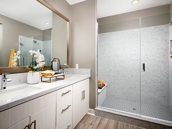 The plan 1 at Parkridge features an open floorplan with ktichen and great room providing ample space to entertain family and friends. The main living level also features a bedroom with walk-in closet perfect for guests or a home office. Upstairs you'll find the primary bedroom and a secondary bedroom both with private ensuite and a walk in closet. Homes include LG stainless kitchen appliances, quartz or granite countertop, flat panel kithcen cabinetry with soft-closing drawers and doors, NEST thermostat, solar system and more. Parkridge by City Ventures rests on La Mesa's edge of urban chic and small-town charm. Just a short walk to La Mesa's thriving and vibrant downtown, the new homes of Parkridge open up doors to the area's new bars and coffee shops that are seamlessly intermixed with farm to table restaurants as well as old-time, local favorite pizza and taquerias. Quaint festivals and celebrations, local parades and historical home districts, parks and the famed Walkway to the Stars. It is this unique and ever-evolving mix of generational amenities that makes La Mesa so endearing. Come home to the comforts of your new home, where modern conveniences and efficient technology are built into an open, versatile floorplan or take a short drive to Mount Helix, parks and trails or jump on the Metro / trolley to Gaslamp and San Diego beaches. Whatever you're looking for, Parkridge ensures you are on the edge of something special.
