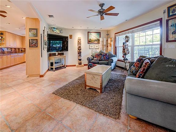 BEAUTIFUL 2 BEDROOMS, 2 BATHROOMS, BLOCK HOME JUST A SHORT DISTANCE FROM PALMA SOLA CAUSEWAY AND BRADENTON BEACHES. MOVE-IN READY home with an expansive chef's kitchen - Kenmore appliances, gas cook top and clothes dryer, chiseled edge granite, recessed lighting, 2nd sink. New Roof 3yrs old. Large master with extra large en-suite bathroom with spa tub, separate shower and its own hot water heater. 2 large, separate living areas in addition to formal dining space. This home is a show stopper with Mahogany built-ins and trims, porcelain tile, Pine doors, mahogany baseboards, Washer and Dryer housed in 6x13 room adjacent to house. Entertain or just relax in the lush, tropical back yard oasis with ambient lighting . Recently completed artist's studio in the fantasy garden could double as an additional guest room. Circular drive plus multi car / RV / boat tandem parking behind privacy fence. Store your toys in 3 camouflaged storage units. NO FLOOD INSURANCE REQUIRED.