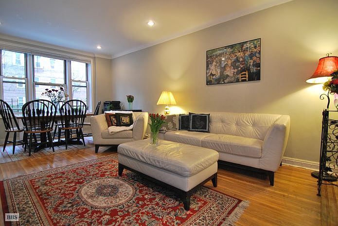 2 Bedroom Great Building It's really a home! Immediately upon entering you are welcomed by the generous sized foyer with closet and built-in shelves, giving a lovely flow into an open and airy living room. The master bedroom is huge and next to the bathroom, the 2nd bedroom is at the opposite side of the apartment, giving privacy between the two bedrooms. The kitchen has an eat-in alcove with a window, and is ready for some tweaking. There are all hardwood floors and lovely arches. At the heart of this home there is a spacious 2 bedroom, EIK, gracious floor plan, wonderful location in a terrific building, all in historic Jackson Heights. This elevator building's amenities are: Live-in superintendent, laundry in building, lovely common patio with table and planting when weather permits. Just a few blocks to many subway lines, including the E, F, M, R, 7. Weekend farmers market, great restaurants, shopping, an approximate 25 minute subway ride to Grand Central Station in midtown Manhattan.