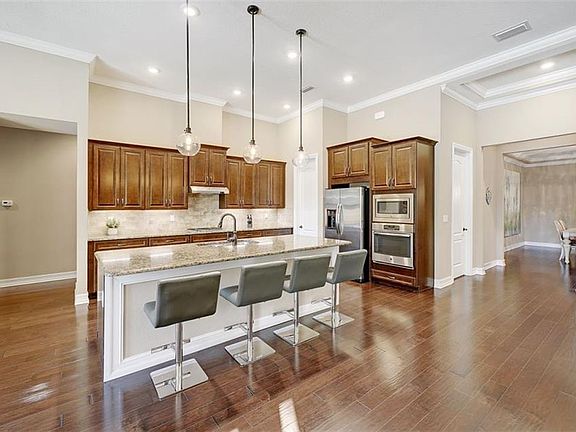 • Interior Features: Ceiling Fans(s), Eating Space In Kitchen, High Ceiling(s), Open Floorplan, Walk-In Closet(s), Crown Molding, Solid Wood Cabinets, Thermostat, Kitchen/Family Room Combo, Built in Features, Window Treatments, Other, In Wall Pest System, Dry Bar, Tray Ceiling(s), Coffered Ceiling(s)
