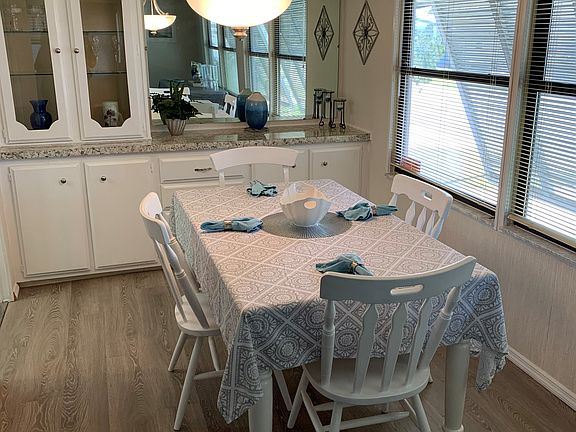 Completely remodeled manufactured home in 55+ plus community of Colony Cove. This lovely home has move in ready appeal including new kitchen cabinets, counter tops, 4 piece whirlpool stainless appliances with warranty, new sub floor and water resistant vinyl plank flooring throughout. Every area of this home has been tastefully done including beautiful landscaping over looking the lake for relaxing indoor/outdoor style living. This home includes a dining room, living room, family room and Florida room also an indoor laundry and storage room and is conveniently located within walking distance to the communities largest heated swimming pool and clubhouse. Lot rent is $877 mo. This home is a MUST see!!