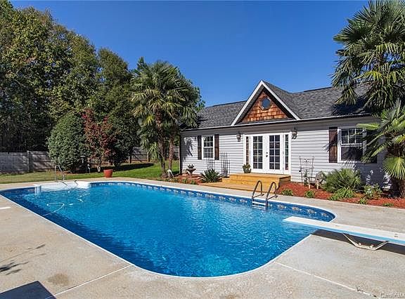 3BR/2BA ranch home in small, quiet community with NO HOA on .5 acre lot! Fully fenced yard surrounding a private yard with a deck, IN-GROUND POOL, palm trees, & custom built 800 sq/ft workshop! Workshop currently used for custom wood working, but could be a studio, man/she-cave etc. It has 100 AMP service w/six 220V outlets and addt'l 110V outlets and window unit heat/AC. Kitchen boasts gorgeous custom cabinets built by owner w/all the bells and whistles & granite counters. Vaulted ceiling in the living room w/fireplace. Spacious master bedroom with walk-in closet and access to back yard. 2nd bedroom could be an office w/its beautiful built-ins and storage window bench. Surround sound in LR, ceiling fans throut. Total HVAC system replaced in 2018. Pool liner replaced 2017, pool pump replaced 2016. Quiet neighborhood convenient to many shopping centers, restaurants, etc. 24 miles to Center City Charlotte. HIGHEST AND BEST OFFERS BY 7PM 11/9.