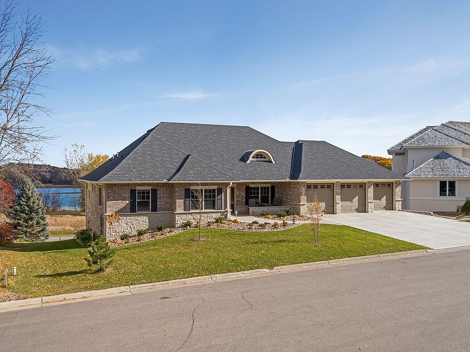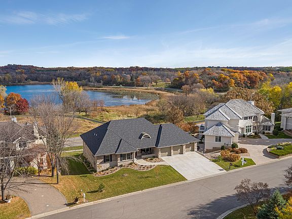Stunning 2017 custom built walk-out rambler with amazing elevated views of the 3000+ acres of Bush Lake & Hyland Lake Park Preserve. Open and flowing with luxury finishes throughout giving to stunning site lines with an abundance of windows offering great natural light and amazing views. Brick and stone exterior with stone lintels, sills and attention to every detail including a copper eyebrow dormer & 40-year faux slate shingles. This zero-entry home is elevator equipped with wide hallways. Luxury master en-suite with a zero-entry walk-in shower and the three additional bedrooms all have a private en-suite and walk-in closets, main floor office, large mudroom, main floor laundry, four season porch, great room with coffered ceilings, fireplace, finished walk-out basement to a paver patio, in floor hot water boiler Uponor System heat, 868 sq ft wide open family room, two bedrooms and large wet bar perfect for entertaining.