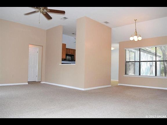 Beautiful home for rent in Haile Plantation. Open floor plan with high ceilings and fireplace in the living room. Sliding doors open up to expansive wood deck overlooking the spacious backyard and Equine Center. The home features a split floor plan and 2 car garage. Conveniently located near grocery stores, Oaks Mall, Shands and North Florida Regional Medical Center. Great school zone includes Wiles, Kanapaha and Buchholz. This home won't last long, call today! 352-359-7949