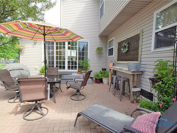 Wonderfully updated/modern home w/incredible byard: brick patio, pergola, fence, sprinkler sys=green grass, WB fire pit, lovely landscaping. Finished LL: exposed black ceiling, carpet; 27x27 bar/media area; 17x12 exercise area; enclosed storage. Main living area: living rm w/gas FP (barn siding surround), eat-in kit & family rm all w/LVP installed in '18. You won't believe the kit: pretty grey/blue cabinets, white subway tile back splash, SS appl pkg, LVP floor & 1-of-a-kind/sharp concrete counters remodeled in '18! Family Rm was added in '12: huge/flr-to-ceiling windows overlook byard.