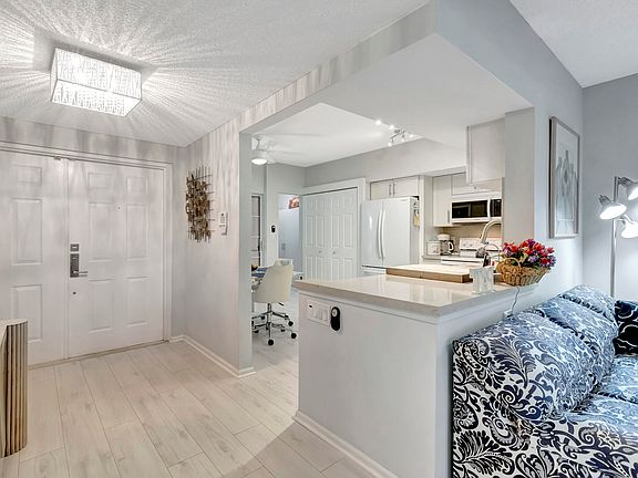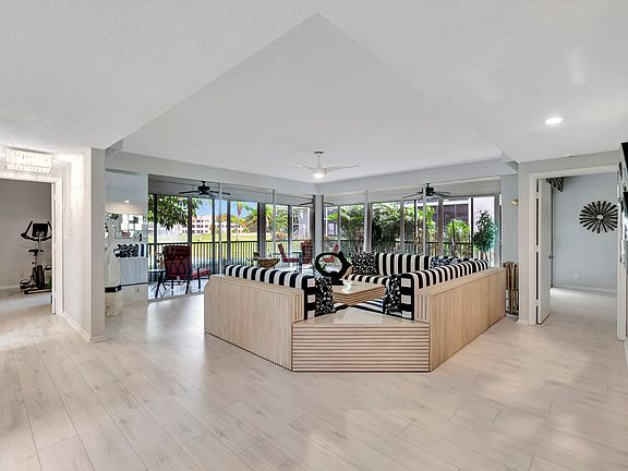 DON'T MISS THIS ONE! Bring your fussiest Buyer to this immaculately maintained lake front Villa in Boca Point Country Club where membership in the club is NOT MANDATORY. You can move right in to this most desirable first floor end unit with assigned covered parking right outside of your front door. Your front entrance features a lovely courtyard area. From the moment you open your double door front entry you will be wowed by the open floor plan and amazing lake views. Enjoy these stunning views from your kitchen, living room, dining room, master bedroom and guest bedroom. This Villa has been totally remodeled with all upscale finishes. The custom kitchen features custom cabinetry, quartz counters, breakfast eating area and a large walk-in pantry. The oversized Owner's suite can accommodate a sitting area and you have sliding door access to you screened, wrap-around outdoor patio. The master bath has been redone as well as the walk-in custom outfitted closet. It's an easy walk to your community pool just one block away which makes this unit a most desirable location. The Club at Boca Pointe membership is not mandatory but available with many options to meet your lifestyle.