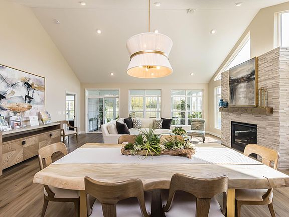 ENJOY screened porch and watch the sunlight dance over the ripples from the fountain. Interior has massive volume ceiling with rock wall gas fireplace. Windows streaming rays of light cast over beautiful flooring, cabinetry, and upscale lighting. Owners suite is spacious and beautifully detailed with crown moulding. Large and spacious bath with extra large shower stall and huge walk in closet with linen storage. Laundry room with utility sink and space for hanging. Second bed will accommodate queen sized bed. Expansive kitchen with walk-in pantry. You are going to love the ambiance... spatial design and finishes exude sophisticated flow and emotional comfort.