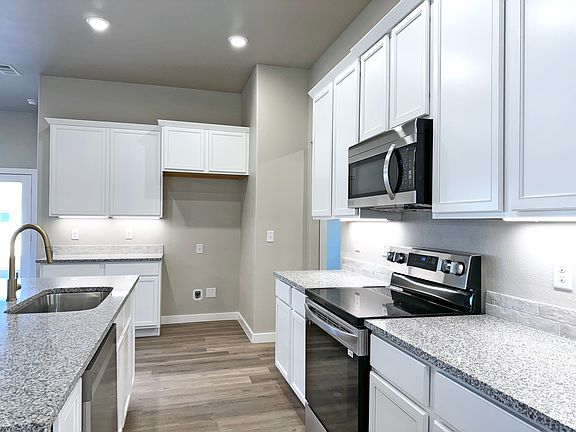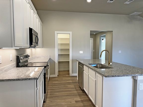 This 1,700 square foot affordable new home greets you with stunning curb appeal featuring a brick exterior and a large front entry-way. In this traditional 4 bedroom, 2 bathroom new home, you will find the perfect balance between an open concept floor plan and efficiency, perfect for large families needing both space and affordability. This quality new home boasts a private Master Bathroom with double vanities, an open living and dining space, and multiple windows placed strategically throughout to provide an abundance of natural light. *Painted brick available as an upgrade to our Mia floor plan.