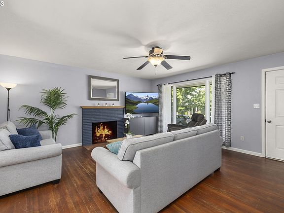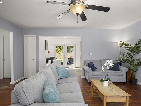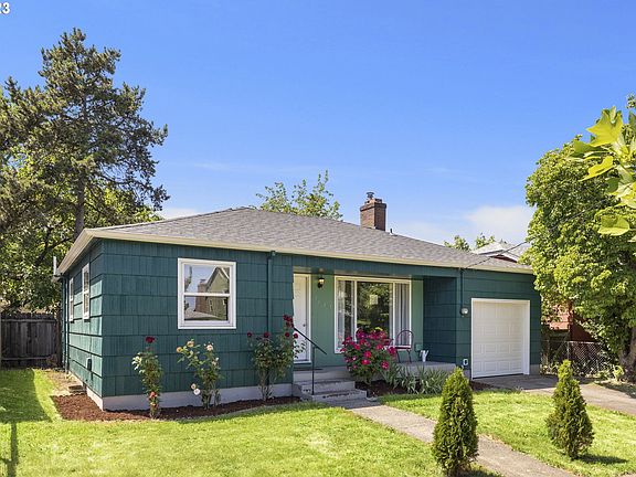 This charming 1956 ranch, nestled in the sought-after Kenton neighborhood, offers a peaceful retreat on a quiet urban street. ADU potential allows for flexible living. Natural light highlights hardwood floors in the inviting living/dining area with a cozy fireplace. Updated French doors reveal an expansive fenced backyard, perfect for private outdoor gatherings, featuring a chicken coop and raised bed for urban gardening. With a Bike Score of 100, a Walking Score of 88, and the MAX line within half a mile, residents enjoy convenient access to amenities: shopping, dining, parks, schools, universities, healthcare, and more. Recent updates include a new sewer line, plumbing, and a modern garage door. The interior and exterior boast a fresh coat of paint. Finished basement offers bonus rooms for living or ADU. Ample storage throughout facilitates an organized living space. [Home Energy Score = 4. HES Report at https://rpt.greenbuildingregistry.com/hes/OR10217282]