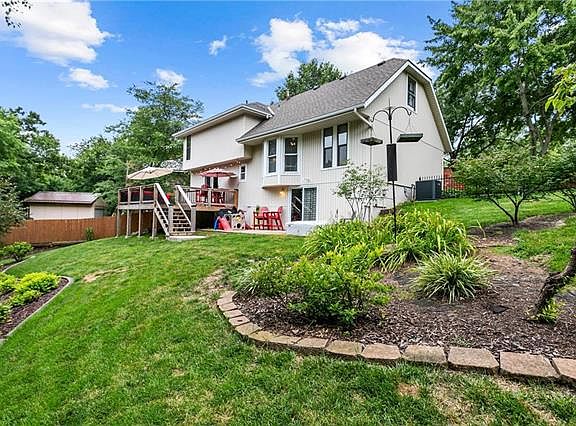 Good lookin' in Gladstone! Well maintained and outstanding, oversized deck with a treed view! Deck steps to patio. Furnace and central air just 1 1/2 years old. 50 gallon water heater 3 1/2 years old. In-ground sprinkler system. 4 true bedrooms. Coveted drop zone just inside the front door. 4th Bedroom on it's own level--great for the teens. Lots of great storage. Located on a cul-de-sac street kids can have fun peddling around. Flat, west facing drive that will help (when winter comes..)