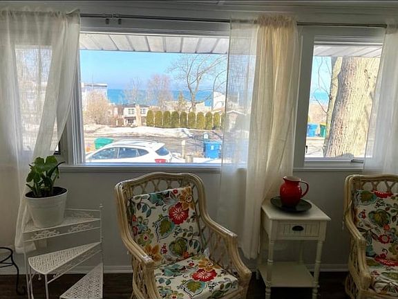 Beautiful Miller beach large 1bed 1 bath, with view of the lake, across the street from the beach access, with a enclosed front sun room a panoramic view of the lake and loads of windows, back deck w fire pit, updated kitchen w stainless steel appliances, large living rm w decorative fire place and full dinning rm, includes A/C gas and electric and wifi, only $1150 Available 1/123 Owner pays heat, electric, water and wifi