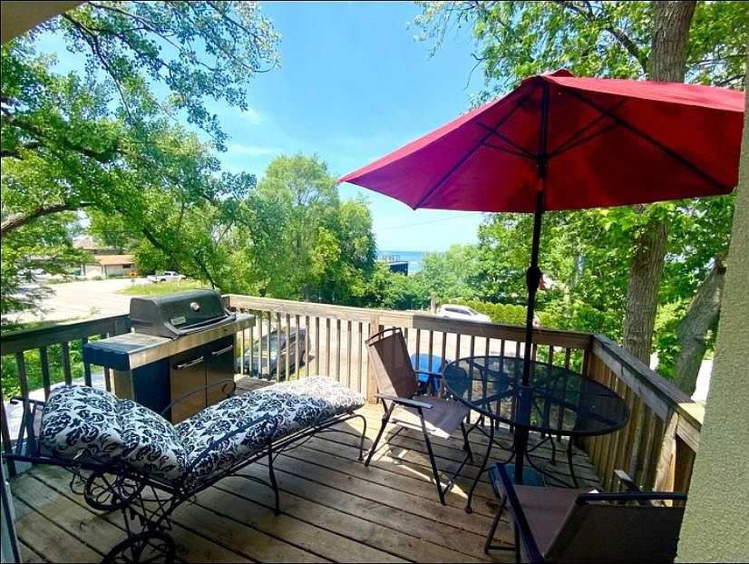 Great Miller beach location across street from beach access, top floor Fantastic Lake view, sunny, one bedroom, gas and electric and wifi included in rent, fully furnished, great view of the lake w sliding glass door to balcony w gas grill from living rm, large open living room high ceilings, wood floors, sunny eat in kitchen, bath w shower parking for one car, available 10/1 Owner pays electric, gas wifi and water
