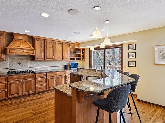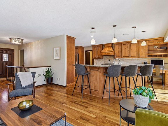 2015 Remodelers Showcase walkout rambler offers the best in one-level living and gorgeous updates. Current owners remodeled the private owner's bath, installed new hickory hardwood floors and custom walk-in closet organizers on the main level. Stunning open kitchen concept with dual-height granite center island plus main floor laundry and mud room area. Finished lower level with entertainment and bonus spaces, plus guest bedroom + bath. Vaulted screened porch and deck look out over lovely landscaped gardens and sits on a beautiful lot overlooking wooded area adjoining Bush Lake walking trails. Only one outlet for this coveted enclave near Bush Lake and Hyland Park/Ski area, with easy access to MOA, airport, and downtown.