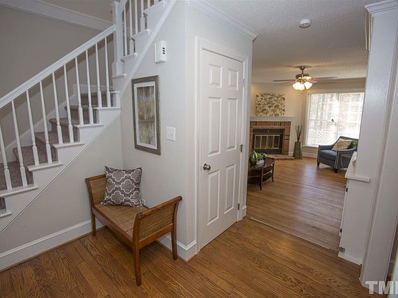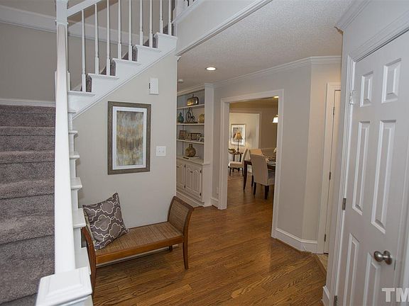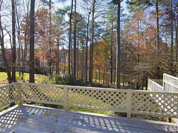 GREAT LOCATION in N. RALEIGH with WATER VIEWS! Garden Gate entry from 2Car w/storage up; TWO masters up - Choose either BIG WIC or garden tub/sep shower; walk-out basement office/large den, extra office/workout space & 1/2 bath. Skylights light up foyer and step-down living room/den w/built in bookcases and wood fireplace. Custom tile kitchen backsplash w/island & breakfast bay granite counters, 2 pantry closets, pass through to formal dining. Fresh paint & carpet & refinished flooring. MOVE RIGHT IN!