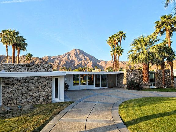 Rare opportunity to own this exceptional Mid Century modern home in one of the most desirable locations in Indian Wells. This beautifully re-imagined and remodeled home faces south and boasts majestic, Un-obstructed views of the mountains . It is located on The Barranca . a small HOA of 23 homes that face a common area wash with incredible views of the mountains in the back drop that gives the feeling of being on acreage with utmost privacy. The home offers 4 bedrooms , each en-suite with their own baths and an additional powder room. The floor plan is open with walls of glass taking advantage of the desert indoor-outdoor living and the breathtaking views outside. The backyard is spacious with a fire pit, sparkling pool & Spa. Offered Furnished per inventory