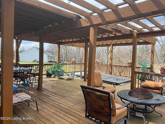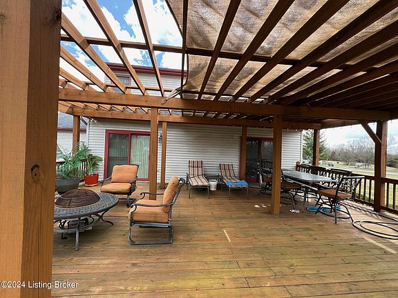 This is your opportunity to own a home in Oldham County with award winning schools at a price you can't beat. It features a large eat-in kitchen with dining area plus room for a family room with a bay window. The living room features a fireplace and stairs to the upper level. The first floor primary is oversized and has a walk in closet. The full bath has been modified to be handicap accessible. French doors lead to the huge deck and pergola which can accommodate a swim spa, dining and seating. Upstairs are two loft areas with two bedrooms and a full bath. The laundry is located off the dining area on the main floor. There is a two car side entry garage. Home is being sold 'as is' to settle estate.