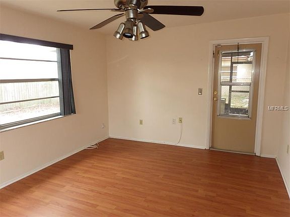 This two bedroom plus a den/office home has two full bathrooms. The backyard features a screen enclosed porch. The home has both laminate and ceramic tiled floors and a complete kitchen with all appliances. Inside laundry room is adjacent to the kitchen. NOTE: per MLS property has a repaired sinkhole.