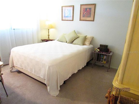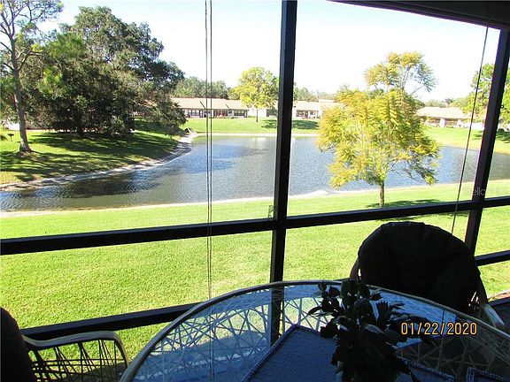 FULLY FURNISHED 55+ 2-bedroom, 2-bath 2nd-floor condo in quiet, friendly, and gated community. Spacious condo which includes an open kitchen, with breakfast bar and lots of cabinets; living room with mirrored dry bar; both bedrooms have a queen size bed; indoor utility room; and screened lanai overlooking a lovely pond. Very tranquil and serene. Carport and storage unit. Community features a swimming pool and spa. Rent includes basic cable, trash,water, sewer, and grounds maintenance. Private and peaceful, yet close enough to shopping, restaurants, and more! Annual rental amount is $975 a month