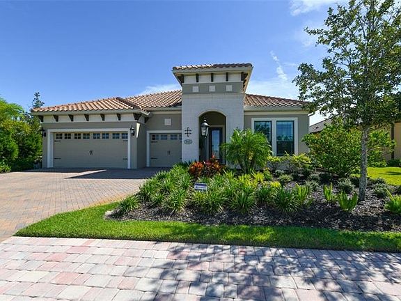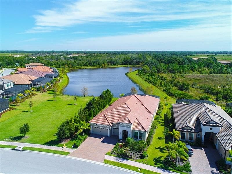 Youâll love the picturesque lake and preserve views from this like new custom home with a stylish great room floor plan. Expertly designed with 3 bedrooms, 3.5 baths and office, this home offers designer touches and easy living throughout its 3,070 square feet of space. A spacious gourmet kitchen boasts stainless appliances, 5-burner gas cook top, granite counters, wood cabinetry, tile backsplash, expansive island with seating and separate breakfast area. Additional upgrades include crown moldings, tray ceilings, custom window treatments, light fixtures and upgraded flooring throughout the main living areas, as well as a built-in wet bar with refrigerator in the great room. The master suite offers a respite from the ordinary with sliders onto the lanai, custom walk-in closets, separate vanities and water closet, large walk-in shower with decorative tile. Open the sliders from your great room to enjoy living the perfect year-round Florida lifestyle while overlooking the view from your screen enclosed pool and spa or entertain from the extended lanai with outdoor kitchen and fireplace. Lakewood Ranch offers residents the ultimate Florida lifestyle with a Private Country Club, 4 golf courses, 18 lighted tennis courts and athletic facilities. Country Club East provides residents with the privacy of gated-community living and the benefits of easy accessibility to everything you need from family-friendly and gourmet restaurants to exceptional shopping and entertainment -- itâs all just steps away.