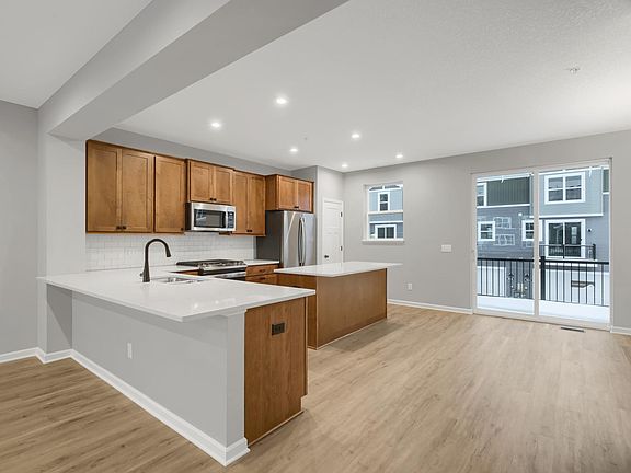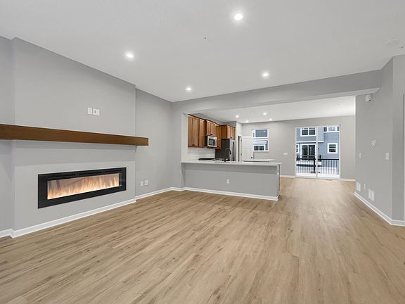 Below market rate lock program! NEW CONSTRUCTION! 1,958 sq ft, 3-bd 2.5 bath, 2 car extended garage townhome with a finished lower level rec room. Open-concept with plenty of natural light, vaulted foyer and 9’ high ceilings. Spacious kitchen with plenty of room to cook and host with a large center island and breakfast bar. Stained cabinets, stunning quartz countertops, and a large, shelved pantry. The dining area is tucked away creating an ideal space for amazing food and great conversations. Just off the dining room, your balcony awaits as a place to relax or cozy up to the electric fireplace. The upper level you will find all 3 bedrooms, a full bath, and laundry complete with a washer and dryer. The owner’s suite has a private en suite bathroom with a double-sinks, a spacious shower, and walk in closet. These townhomes provide the luxury you want with the convenience of an association-maintained lawn, snow, and trash/rec services. All appliances included in the sale!