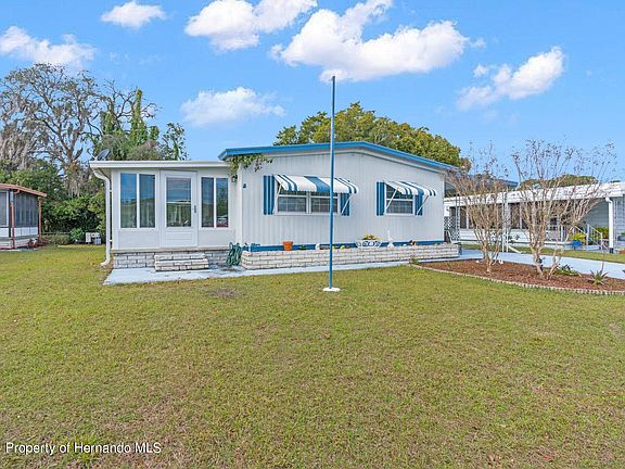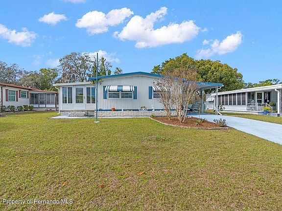 Active Under Contract - Accepting Back Up Offers. We've got the biggest crush on this adorable mobile home in 55+ High Point, and we think you will, too! No lot rent here - you'll own the parcel that this cutie sits on. Sunlight streams through the large windows of the enclosed Florida room, gently illuminating the spacious and open living area. Updated features include a new AC in 2017, beautiful laminate flooring in the living spaces, and crown molding/trim throughout. The eat-in kitchen is generously sized with plenty of counter and cabinet space. Nibble your bagel at the breakfast bar before heading out to play a round or two of golf. Both of the bedrooms are sizable, and the primary bedroom includes an ensuite half bath for your convenience. You'll find additional storage and the washer/dryer hookups in the attached storage area just behind the single car carport. High Point is a gated community with low HOA fees. Avail yourself of a plethora of amenities, like a clubhouse, golf course, tennis courts, bocce ball, a library, and a community pool. Get social and rub elbows with your neighbors at one of the many clubs and activities hosted by fellow residents. It's ideally situated just off SR-50, mere minutes away from lots of shopping and dining options, as well as a major hospital. You'll also have Beacon Cinema, Marker 48 Brewing, and even Weeki Wachee Springs State Park with its world-famous mermaids, within a 5-mile radius. Tampa is easily accessible via the Suncoast Parkway, and the magic of the theme parks in Orlando is less than 2 hours to the east. Schedule your private tour today and fall in love with the 55+ Florida lifestyle you deserve!