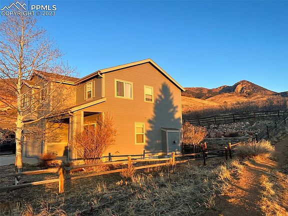 If panoramic views, tranquility, peace, and beautiful sunset/sunrises are important to you, this is the property for you! Situated in the highly sought after area of Peregrine, Rock Rimmon, this semi-custom Saddletree Home is nestled at the top of the West Oak Ridge Community in a quiet cul-de-sac. It offers 4 spacious bedrooms, two and a half bathrooms and a 2 car garage. Should you want to add additional space there is also a sizeable unfinished basement with windows. The master bedroom has phenomenal mountain views to wake up to and leads to an en-suite bathroom and large walk in closet area. The other three rooms are a great size as queen rooms leading off to a hallway closet and bathroom and a good size laundry room conveniently situated near the bedrooms. This property is about as private as you can hope for as there are no properties to the right side of the house or anywhere behind, offering you breathtaking mountain views usually only found in far more expensive properties or very secluded areas. The city of Colorado Springs can be viewed from the front bedroom windows, or behind the house and offers 360 panoramic views across the whole of Colorado Springs from beyond Briargate to Cheyenne Mountain. There is an abundance of wildlife that you can enjoy watching from the fenced garden area. The back yard is large and ideal for entertaining anyone. The property has a newly painted exterior in 2019 along with a brand-new roof which has a transferrable lifetime warranty on materials. The furnace was also completely replaced which offers a 20-year warranty on the heat exchanger. There is an additional concrete RV pad to the side of the house. There is NO HOA (or fees) in this community. The views behind the home are of Blodget Mountain which boasts 388 acres of open space. Sold as seen. Boiler is 20 years old.