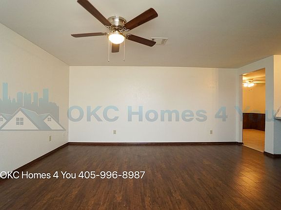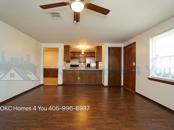 You will love this updated 2 bedroom duplex! There are ceiling fans in the living room, kitchen, dining room, and both bedrooms for extra comfort in the hot Oklahoma weather. The living room and bedrooms have beautiful wood-look vinyl flooring and there is ceramic tile in the kitchen, dining, and both baths. All countertops have been updated with a lovely stone-look laminate and there is contemporary tile in both showers. The home includes a gas range, dishwasher, stainless steel refrigerator, and washer and dryer so you don't need to worry about any appliances! The laundry room is off the kitchen and has access to the attached 1 car garage. No pets This is a no smoking property.