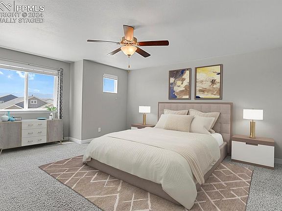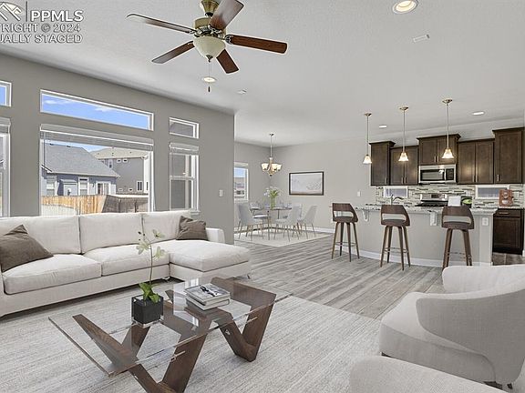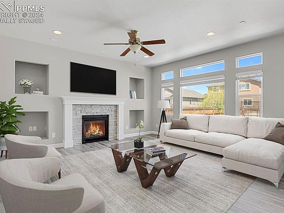 Welcome to this tastefully upgraded 5 bedroom 4 bathroom home located inside a well-kempt and quiet community. Why wait for a new build with all its unconsidered expenses when there is a newer completely move-in ready home available now! "This home really has everything from beautiful engineered hardwood throughout the main floor to a preconfigured EV charger in the 3-car tandem garage." The upgraded kitchen features crown-molding on the cabinets, granite countertops, and all stainless steel appliances with an added bonus of a built-in mini wine fridge. Upstairs you don't want to skip out on the view of Pikes Peak from the primary bedroom that features two closets and an ensuite bathroom. Also conveniently located upstairs is the laundry room. And for those needing office space or more space this home has you covered with an office space located on the main level and a fully finished basement with 1 bedroom and 1 bathroom. Come see for yourselves! Don't miss out on the opportunity to own this well thought out and upgraded home!