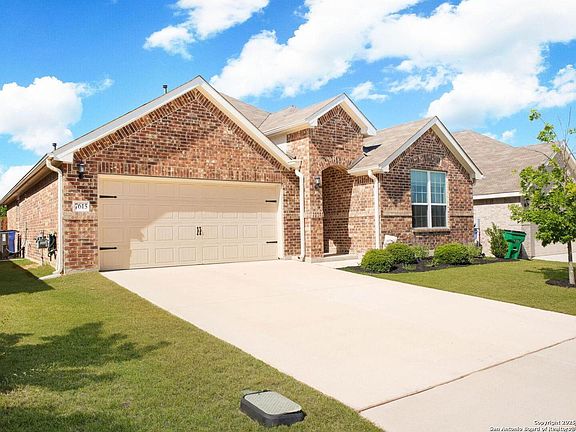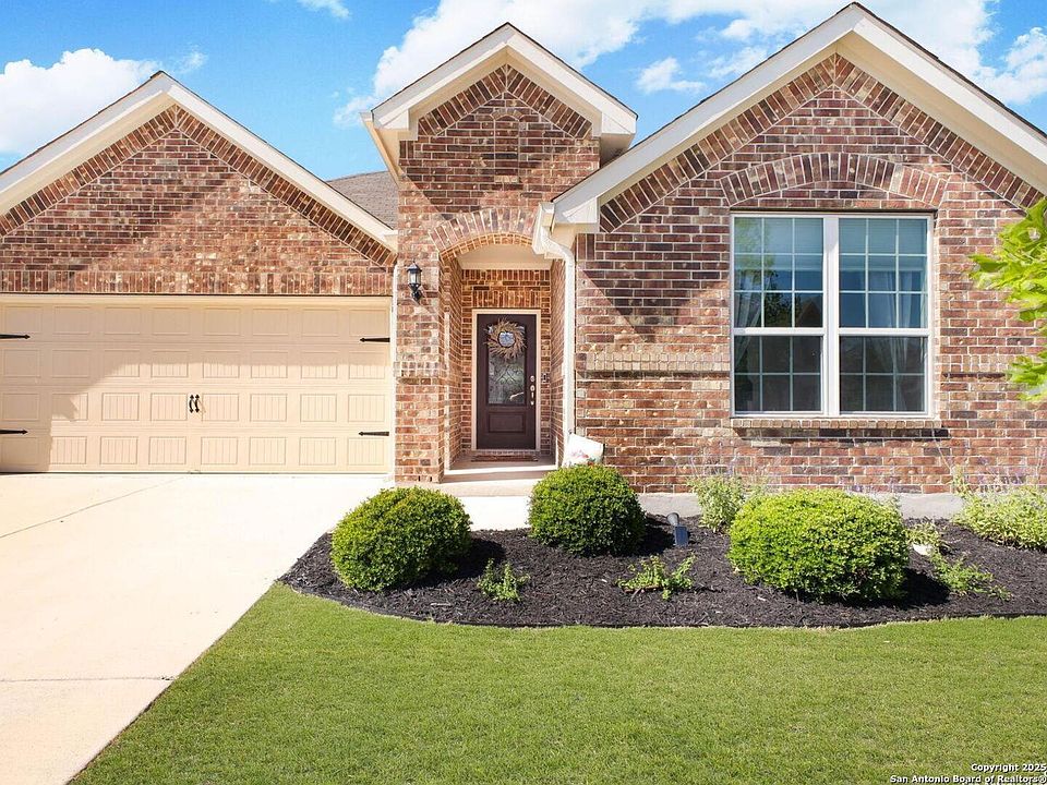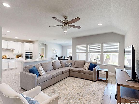 Welcome to 7615 Pecos Ridge, a well-maintained single-story home located in the desirable Cielo Ranch community. This 3-bedroom, 2-bathroom home offers a functional and open layout, situated within Boerne ISD while benefiting from Bexar County taxes and utilities with a low 1.79% tax rate. Just minutes from Loop 1604 and I-10, this home provides convenient access to San Antonio, Boerne, shopping, and dining. The home includes numerous thoughtful features such as built-in shelves in the living room, a Ring security system, ADT security panel, updated hallway light fixtures, garden string lights on the back patio, and garage shelving with a pegboard for storage. Upgrades throughout the home include gutters around the exterior, blackout blinds in guest bedrooms, laundry room shelves and cabinet, updated matching door hinges, an upgraded light fixture in the primary bedroom, and ceiling fans in both the living and guest rooms. The backyard has been enhanced with landscaping and a custom patio, and the home is also pre-plumbed for a water softener. This home combines comfort, convenience, and value in a prime location-don't miss your opportunity to make it yours!