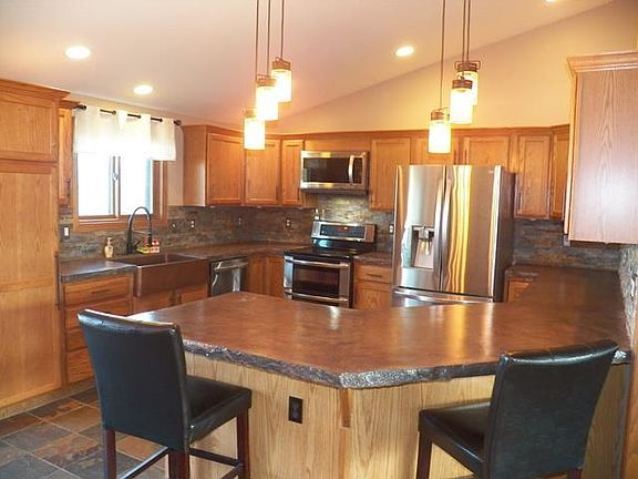 Your Dream House Awaits You! - Constructed on 5.5 acres this ranch house with exposed basement offers a fully equipped kitchen with concrete countertops, copper sink, all newer appliances ceramic tile floors accented by a matching dining area! Spacious living room and split design bedrooms with a generous sized Master BR complimented by a huge Master Bath w/jetted tub! Lower level has in-floor heat with a sprawling family room as well as a fourth BR or office. Deck off the rear with patio oversees the backyard. 60 X 100 pole building w/ dirt floor could be used for horses and so much more!