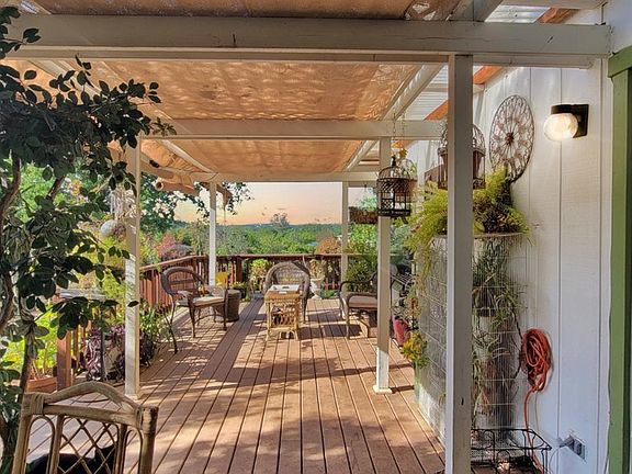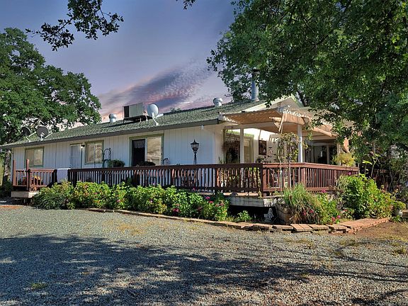 Welcome to this secluded 3 bedroom, 2 bathroom home, nestled upon a hilltop with beautiful views and privacy. Plenty of shade offered from the large Oaks, decking on each side of the home and large front decking is great for entertaining guests and outdoor dinners! Existing green house and chicken coop, plenty of room for parking, fully fenced, gated entry, horses okay, detached garage and sitting areas throughout. Interior features a wood burning stove in the living room, one of the guest bedrooms has a laundry closet, kitchen offers extra shelving, plenty of cabinetry and garden bay window. Located in the beautiful Rancho Calaveras subdivsion of Calaveras County, near Lake Hogan, the Calaveras River and La Contenta Golf Course. Love where you live!