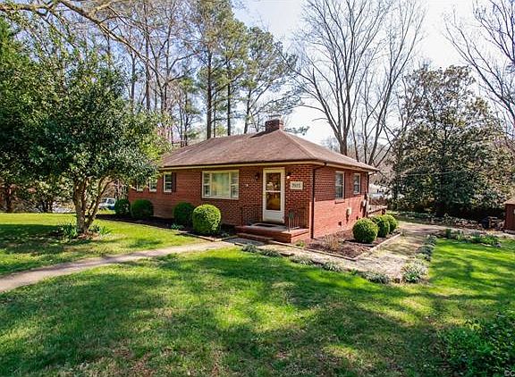 Welcome to Skipwith Farms! Great brick ranch in a private neighborhood. Enjoy the wood burning fireplace in the living room that has wood floors and crown molding. Kichen has white cabinetry, dishwasher, microwave and laminate flooring. Eat- in kitchen with built-ins, chair rail and crown molding. Three bedrooms and two bath home, one bedroom is paneled so it could be a nice office/study. Partially finished basement for laundry facilities, cabinets and storage. Detached worshop with electricity.