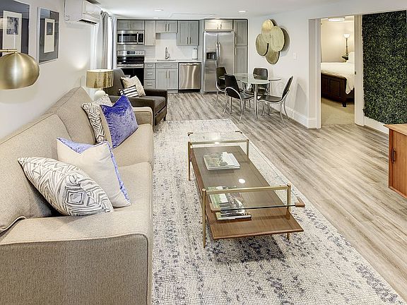 This 1BR/1BA basement unit is located in upper NW DC on a tree-lined street in Shepherd Park. It's close to two bus stops that serve as direct routes to downtown DC or just a 15-minute walk to Silver Spring metro (red line). The unit is next to beautiful Rock Creek Park and is fully furnished with West Elm, Restoration Hardware, Mitchell Gold + Bob Williams, Waterworks and other high-end finishes in a chic mid-century modern design. The unit is available for a short-term rental (preferably 3-6 months) or year-long rentals beginning on March 1. Just some highlights: *Fully furnished with high-end finishes *Gourmet kitchen with designer quartzite counter tops, Waterworks tile back splash, and stainless steel appliances, including built-in microwave and full-sized refrigerator with ice maker *Large bathroom with beveled subway tile, Waterworks combed basalt floor tile and reclaimed wood veneer vanity with quartz counter top *Electrolux front-load washer/dryer *Modern porcelain tile with Berber carpet in bedroom *LOTS of natural sunlight with Eastern and Southern exposure *Entrance with full-light door *Smart electronic lock *Dishes, silverware, pots, pans, crockpot, coffee maker, and other kitchen items provided -- providing the perfect turn-key kitchen set up * Rent: $1,695/month * Refundable Security Deposit: Equal to one month's rent ($1,695) * Rent includes all utilities (electricity, WiFi internet, cable TV, water, sewer, trash, recycling) * This is a NON-SMOKING unit and there is no smoking outside within 50 feet of the property line. Unfortunately, we do not allow pets. * All applicants are required to submit a rental application, authorize a credit and background check, and pay an application fee. * Application Fee: $35 application fee for credit/background check for each applicant over the age of 18 years. * Property adheres to all DC Fair Housing Laws.