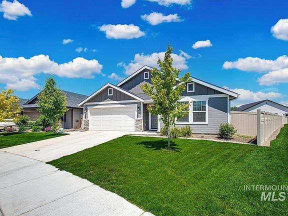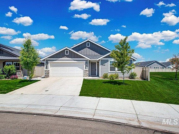 Meticulously cared for like new single level home built in 2020 with upgrades throughout. This 2007 sq. foot home is Open and spacious with 3 bedrooms, 2 baths and an office. Right as you enter you will feel at home with upgraded flooring through the hallway, all through out the kitchen and large dining room. Huge vaulted great room and spacious Kitchen featuring stainless appliances, modern colored cabinets, laminate floors, a massive island, large pantry and pendant lighting. Large Master suite with a walk in closet and dual vanities. Don't forget about the extra bathroom, two extra bedrooms and a conveniently large office off the great room with shiplap and french doors. Wander out towards the garage through a mudroom with built-ins and a separate large laundry room. In the garage you will find a 526 sq foot oversized 2-car garage with professional epoxy'd garage floors. Home is Situated on a large east facing back yard with no neighbors on one side.