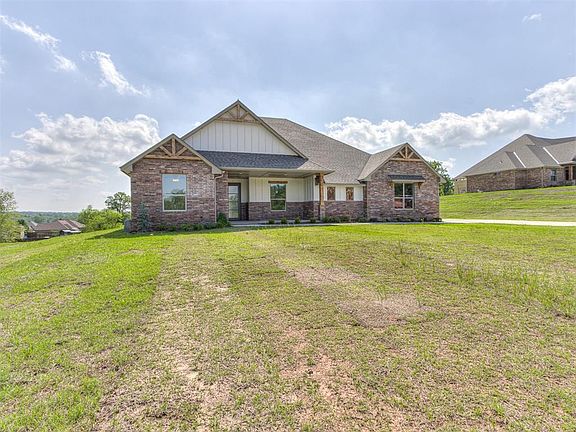 Gorgeous new construction home in the esteemed Choctaw School District, completed in April 2024! This stunning split 3-bedroom, 2.5-bath home is nestled on a generous 1.42-acre lot. You’ll love the oversized covered front porch as you approach the home. Inside, you'll find a thoughtfully designed open floor plan with a private primary suite, featuring quartz countertops throughout and custom cabinetry meticulously crafted on-site. Wood-look tile flooring graces all main areas and baths, adding warmth and elegance to every step. The living room features a cozy vent-free fireplace and wood beams, creating the perfect ambiance for relaxation. In the kitchen, the island with seating for 6, Whirlpool built-in appliances including gas cooktop, oven, microwave, and a walk-in working pantry with lower cabinets and electric outlets make cooking and hosting a breeze. The primary bedroom offers a retreat with laundry room access, while the master bath beckons with a soaking tub, walk-in shower with dual shower heads, separate vanities with knee space in one, and triple hanging and built-in dresser in the massive closet. All bedrooms and primary closet come with level 3 Shaw nylon carpet with an upgraded life-proof pad. Step outside to the rear covered patio, complete with a grill gas line, grilling porch, and fan, offering the ideal space for outdoor entertaining. Additional features include a mudroom, expandable smart home alarm system, sprinkler system, Delta plumbing fixtures, double-pane thermal break insulated windows and a spacious, fully insulated 4-car garage with 8' garage height doors. With a one-year homebuilders warranty included, this home is ready to welcome you with open arms. Don't miss your chance to make it yours!