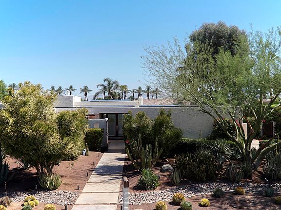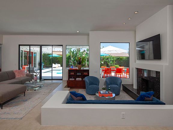 Stunning and pristine, this beautiful property is located in the heart of Indian Wells and close to the Tennis Gardens and El Paseo! This open concept property with gorgeous mountain views is gorgeous and updated with owned solar! The living room area with vaulted ceilings has a large seating area and a cozy pit for gathering around the fireplace. An attached casita with sitting room and 1 bedroom plus a morning kitchen, with pool views is a great space for guests and family to visit. Lots of glass doors and windows give this an airy and bright feel with views to the the sparkling salt water pool and spa with a new variable pump. The chef's kitchen has gas cooking with quartz counters and a breakfast bar finish off the nicely appointed kitchen. Dining room is elegant for candle lit dinners. Primary bedroom is ensuite with a free standing soaking tub, large tiled walk-in shower and large walk-in closet. The pool area has multiple seating areas with a lovely fire pit for entertaining. The property is beautifully landscaped with extensive solar lighting both in the front and back yard. A large glass patio table with umbrella for entertaining your guests and lots of lounging areas for relaxing in the sun! New front and side of the property have locking iron gates for your privacy. Freshly painted inside and out for a fresh pristine feel! Call for an appointment to view this amazing home!