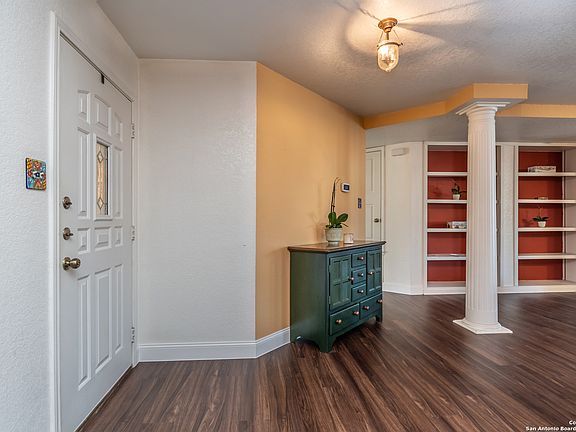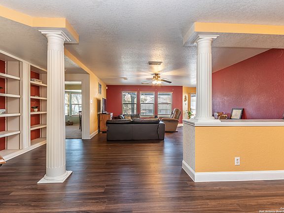 This is a good one! Convenient to I-35, 1604, The Forum, Randolph, Ft. Sam and Live Oak city park. Ready for your move! All electric. Ceiling Fans throughout. Laminate and tile in Living Areas & Kitchen, carpeting in BRs. Two eating areas with separate DR. Open floor plan with lots of windows and light. Split MBR with en Suite and sitting/reading area. Built-in shelving. Walk-ins in all BRs. XL pantry/Utility Room. Recent updating in Kitchen with new appliances, counter tops. 9X7 covered front porch. 16X15 rear Pergola with tile flooring. Water softener. Security system. This is one you will not be disappointed to see!!