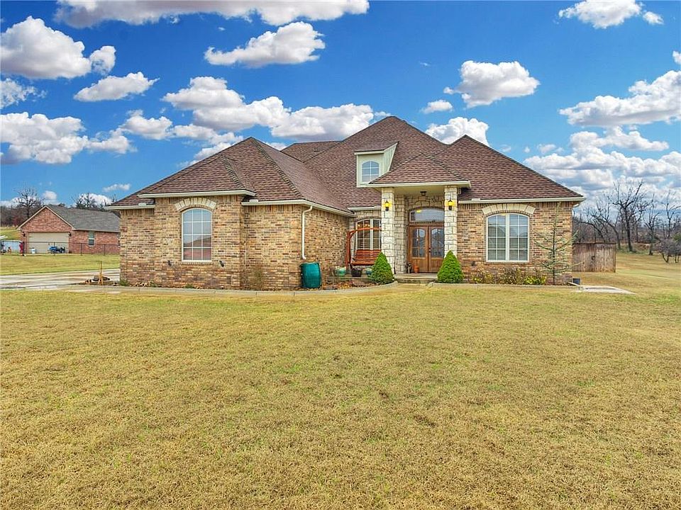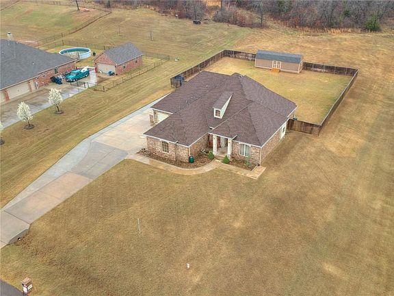 Beautiful 3bed,2.5 bath home with study on 1 acre lot in Choctaw! This spacious home features an open concept great for entertaining! With a large kitchen that has granite counter tops with a center island and stainless steel appliances with a double oven, built in surround sound, and 2 dining areas! Covered patio, large storage shed in backyard, storm shelter and built in generator. This is one you won't want to miss, schedule your showing today!
