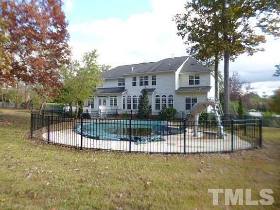 Move-in ready home in desirable Wake Forest! Bright two-story foyer welcomes you with bay windows in both living and dining rooms. Awesome master suite w/fireplace, glamour bath & huge walk in closet. Family room with cozy fireplace and wall of windows overlooks large backyard. Sunroom leads to large deck and beautiful pool. Most bedrooms are suites with direct access to a bath. Seller may provide financing. See seller disclosure re: flood zone.