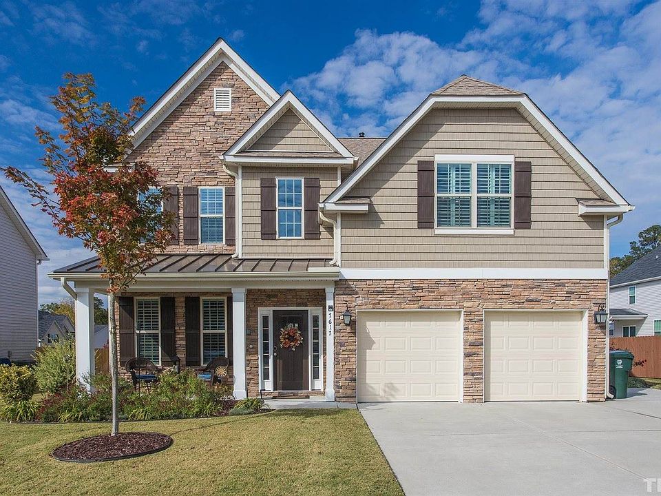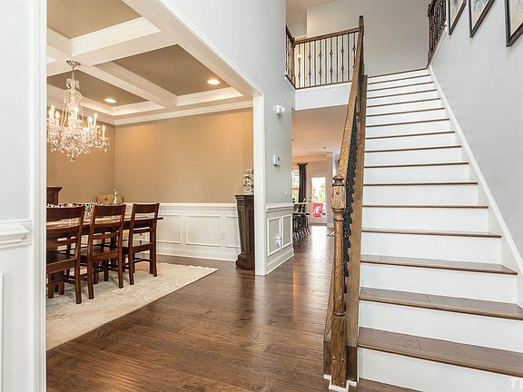 This Beautiful Craftsman Home is a MUST SEE, and is full of upgrades such as coffered dining room ceiling, white kitchen cabinets, white granite in kitchen, gourmet kitchen layout with double wall ovens, 5 burner cooktop, hardwoods and 2-piece crown molding on 1st flr. This DR Horton model home's floorplan has a downstairs bed and bath w/ master upstairs. Perfect for In-law suite! Don't miss this one!